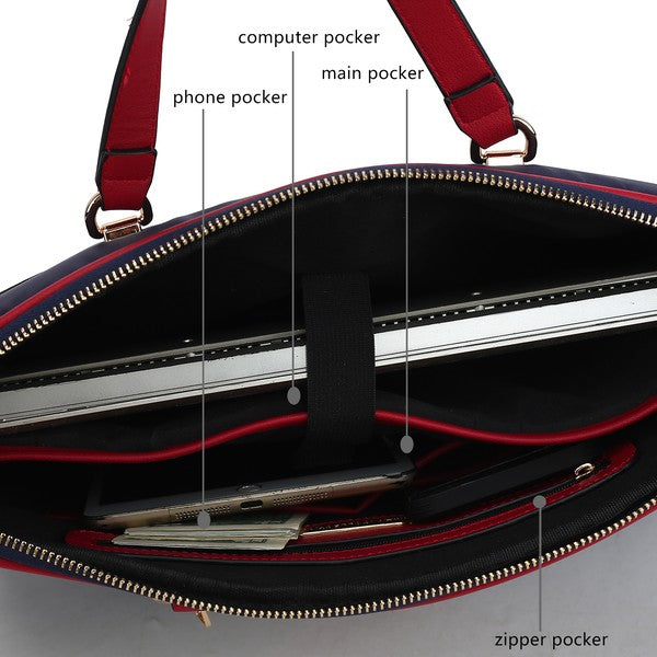 Interior details: Interior features a wall zip pocket, two slip pockets and a laptop compartment