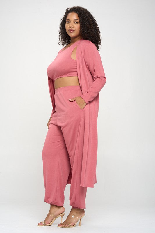 This Matching three piece set - Crop top, High Waisted Jogger Pants, & Cardigan Super soft French terry Elastic waist and leg cuff Fabric has good stretch Pockets87% Polyester 10% Rayon 3% Spandex