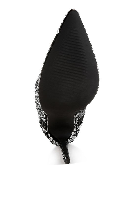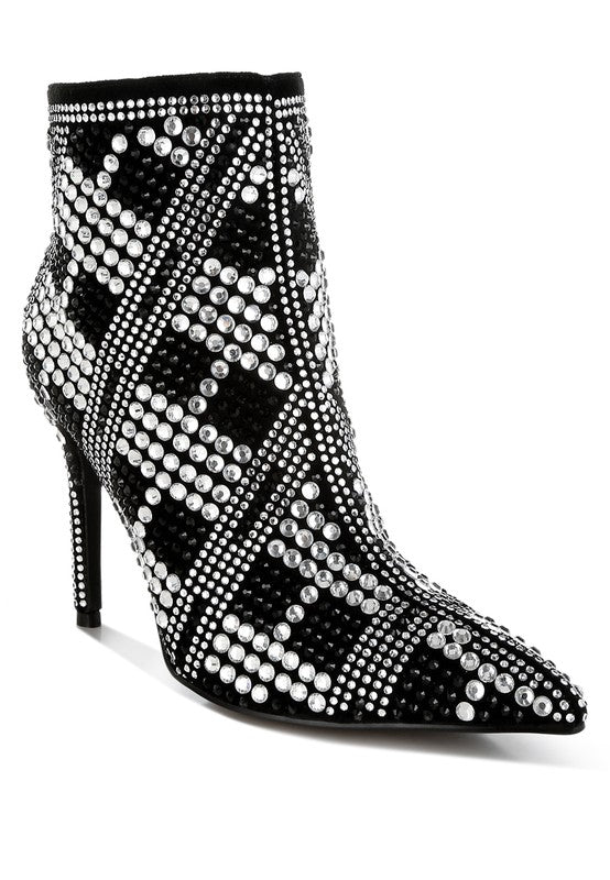 Urbanite Rhinestones Studded Stiletto Heel Boots