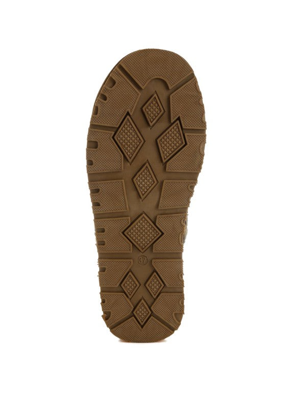 The platform classic slingbacks are one of a kind with the chunky structure and leopard print faux fur trim. The footwear is stylish and has an eccentric allure, perfect to elevate your fall and winter wear. The fur insoles give a comfy fit while the flatforms are comfortable. Pair them with some London Rag ensembles for a captivating look!
