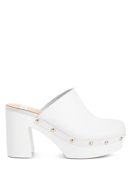 The clogs are minimalist beauties with stud embellishments that add a touch of much-needed bling which gives the footwear an intriguing element. The light cushion insoles offer a relaxed and comfortable experience of the shoes, which makes them ideal for work wear. Their versatile quality also makes them easy to style.