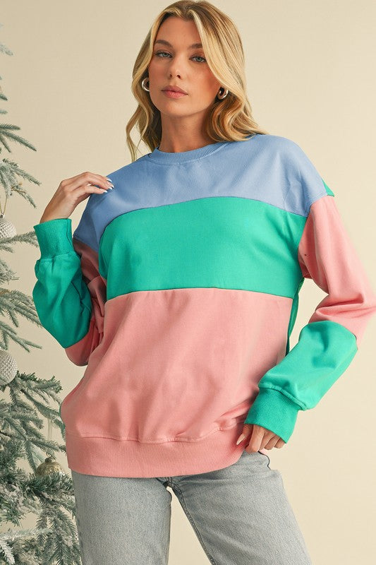 Colorblock Patchwork Drop Shoulder Sweatshirt