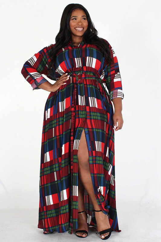 Keep it on a trend with our Mallory Button Down Plaid Maxi Dress to channel those cool-girl vibes. This is the perfect dress that can be worn year-round and even as a duster. It features a collar neckline, dolman sleeves, and is composed of lightweight breathable material for comfort. You can style this with your favorite skinny jeans and or heeled boots.