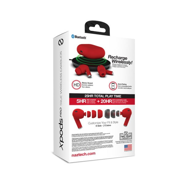 Meet the next evolution of Naztech true wireless: The Xpods are going Pro. Music and calls sound better than ever! The smaller earbuds have customizable tips that form a noise-isolating seal, precision-tuned drivers for rich acoustics, the latest Bluetooth technology for solid connectivity, and 2 microphones.