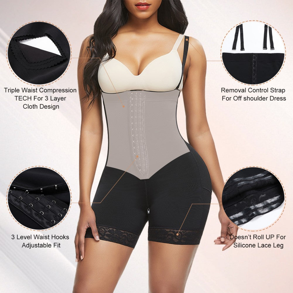 Beautiful slimming bodyshaper that slims and reduces the tummy and thighs. This firm compression body shapewear with mid length leg is the perfect solution for looking smooth and sexy in your dress or outfit
