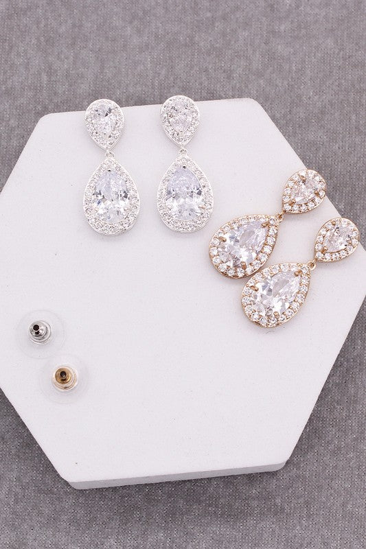 STONE FACETED ROUND TEAR STUD EARRINGS