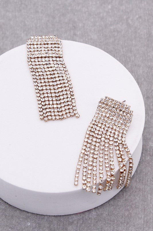 TASSEL RHINESTONE SHORT STUD EARRINGS